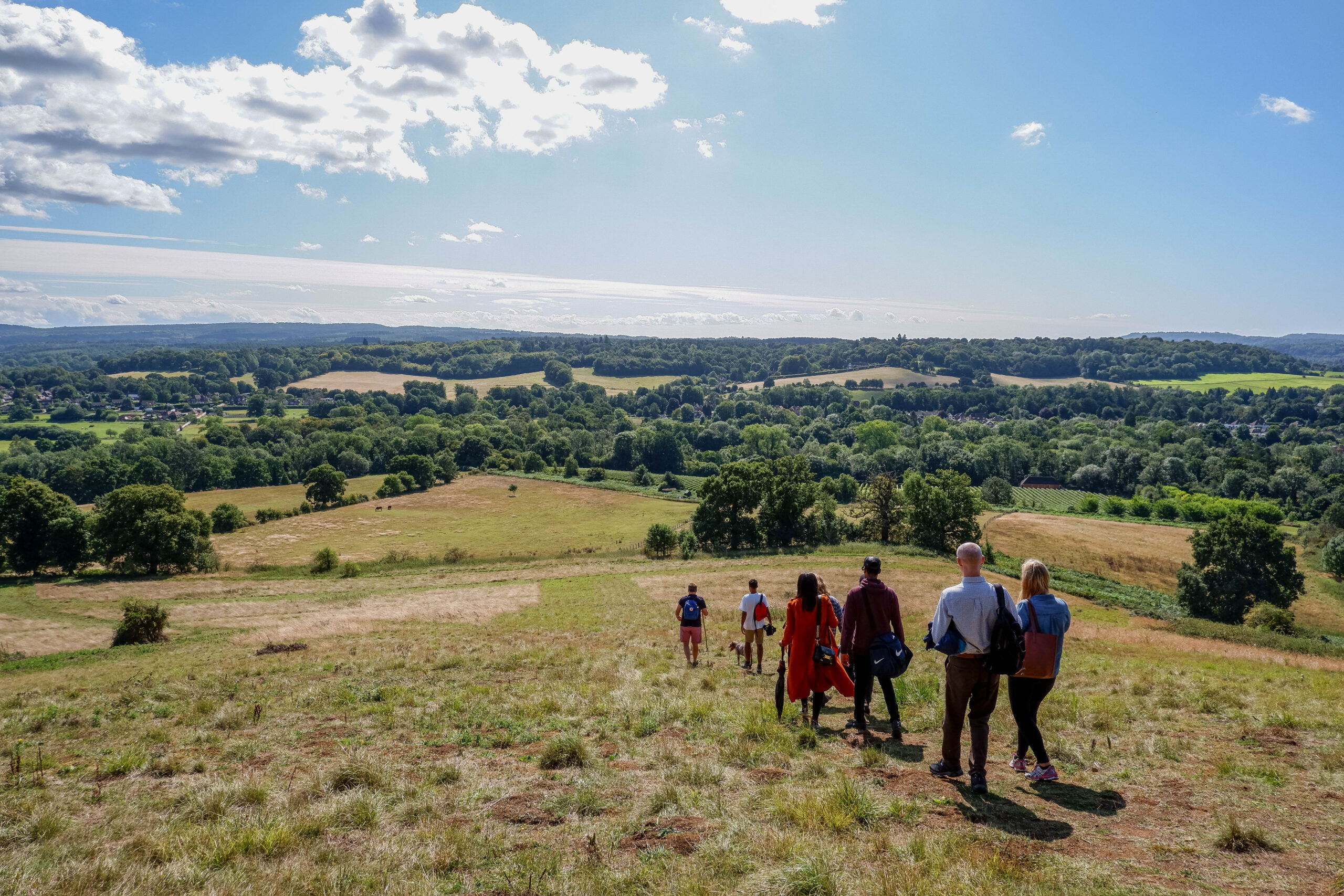 Curated by Bertie and his dog, Ruby, this is a gem of a walk. So rural yet so close to London. Head off along the River Wey before heading up into the Chantries. Think ancient woodland, beautiful bluebells and outstanding views. Reflect at St Martha’s before heading to The Drummond Arms and a well earned rest. Return via the gunpowder mills and the llama’s before crossing over Pewley Down and back into Guildford.